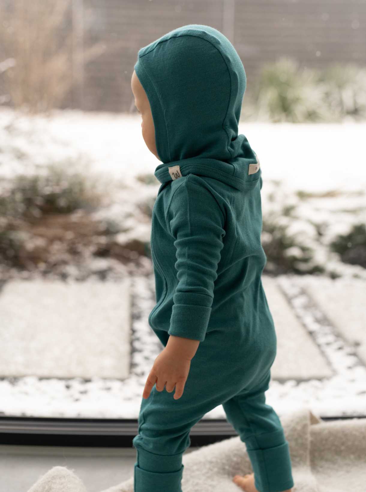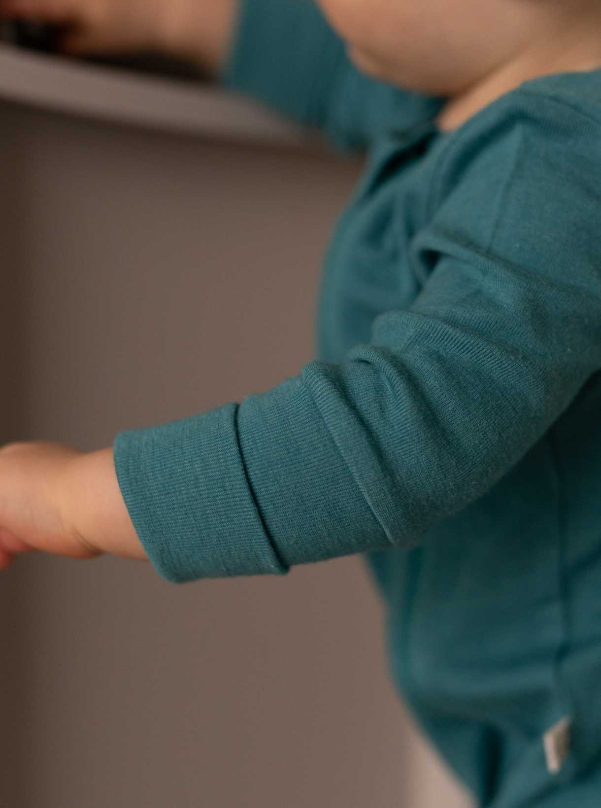 Kombinezon z wełny merino i jedwabiu dla dzieci i niemowląt (GOTS), turkusowy